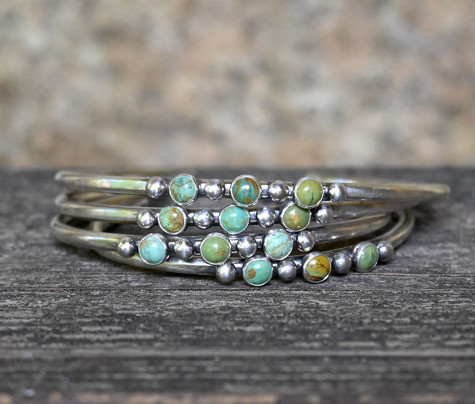 Blue Kingman turquoise sterling silver daisy bangle bracelet